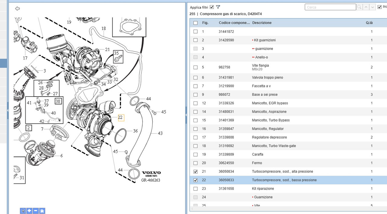 Nell'elenco ho evidenziato i due turbocompressori, quello di alta e quello di bassa pressione, che sono chiaramente visibili nell'immagine.