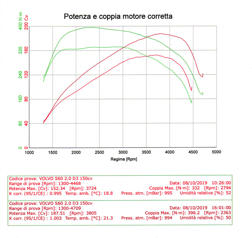 Il 150cv si può portare a 190cv tranquillamente, a livello di turbocompressore si tratta di 0,2bar di pressione turbo in più, poi facendo la mappatura si ritocca l'iniezione della nafta, la pressione di iniezione, la risposta del pedale dell'acceleratore, la gestione della geometria variabile della turbina (se c'è) e la mappa vera e propria della gestione del boostcontroller del turbo, perché la pressione è gestita in maniera variabile a seconda del regime e del carico.